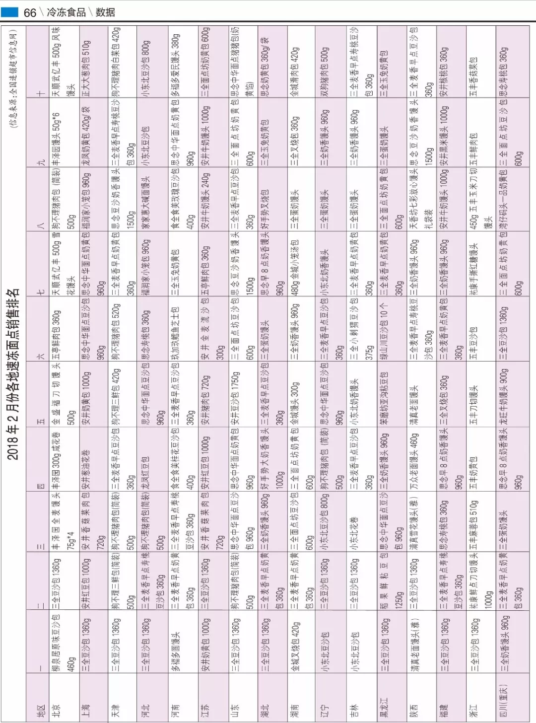 來源: 冷凍食品網(wǎng) 發(fā)布者:編輯▼2018年2月份各地速凍面點銷售排名