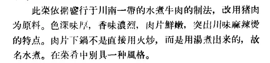 ▍1960 年,第二商業(yè)部飲食業(yè)管理局編撰的《中國(guó)名菜譜》中,要求把水煮肉片做出川味「麻辣燙」的特點(diǎn)。