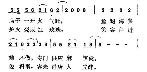直到 80 年代后期,「麻辣燙」也沒有完全擺脫其形容詞意味。1987 年由張新泉作詞、谷建芬作曲的《火鍋姑娘》,仍以「麻辣燙」代指重慶火鍋的特色。