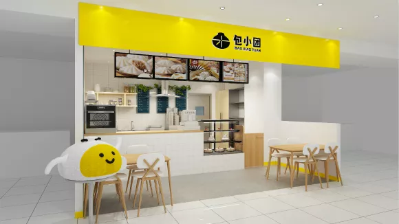 迎合年輕人的喜好,改變了品牌調(diào)性的“包小團”,打出了“包子界最有根兒的潮牌”的口號。從漫畫風(fēng)格的LOGO、到以黃、白兩色為主的店面設(shè)計,都在營造小清新的用餐氛圍。