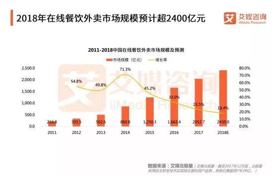 2018年在線餐飲外賣市場規(guī)模預(yù)計(jì)超2400億元
