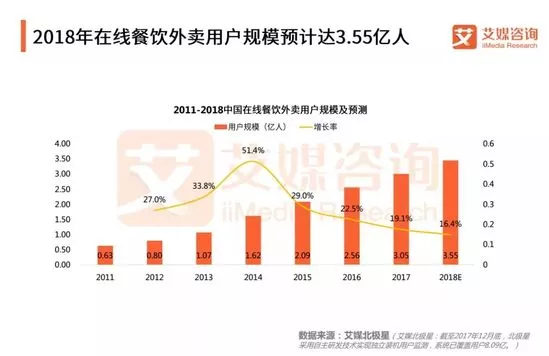 2018年在線餐飲外賣用戶規(guī)模預(yù)計(jì)達(dá)3.55億人