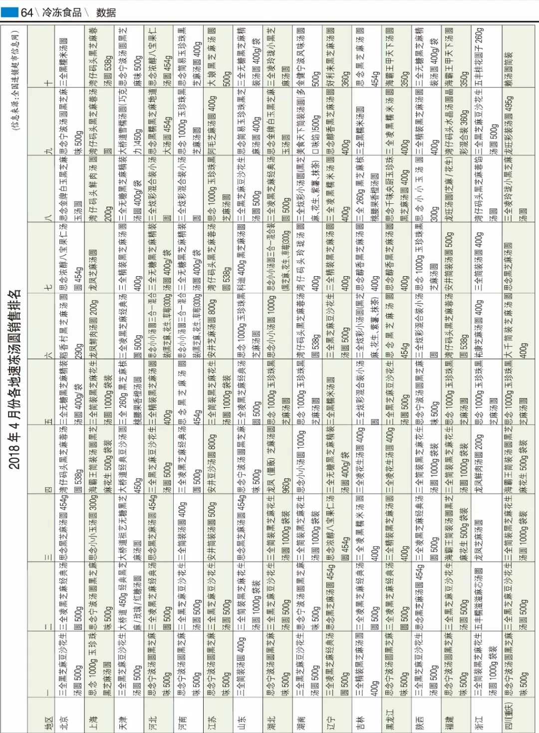 來源: 冷凍食品網(wǎng) 發(fā)布者:編輯▼2018年4月份各地速凍湯圓銷售排名