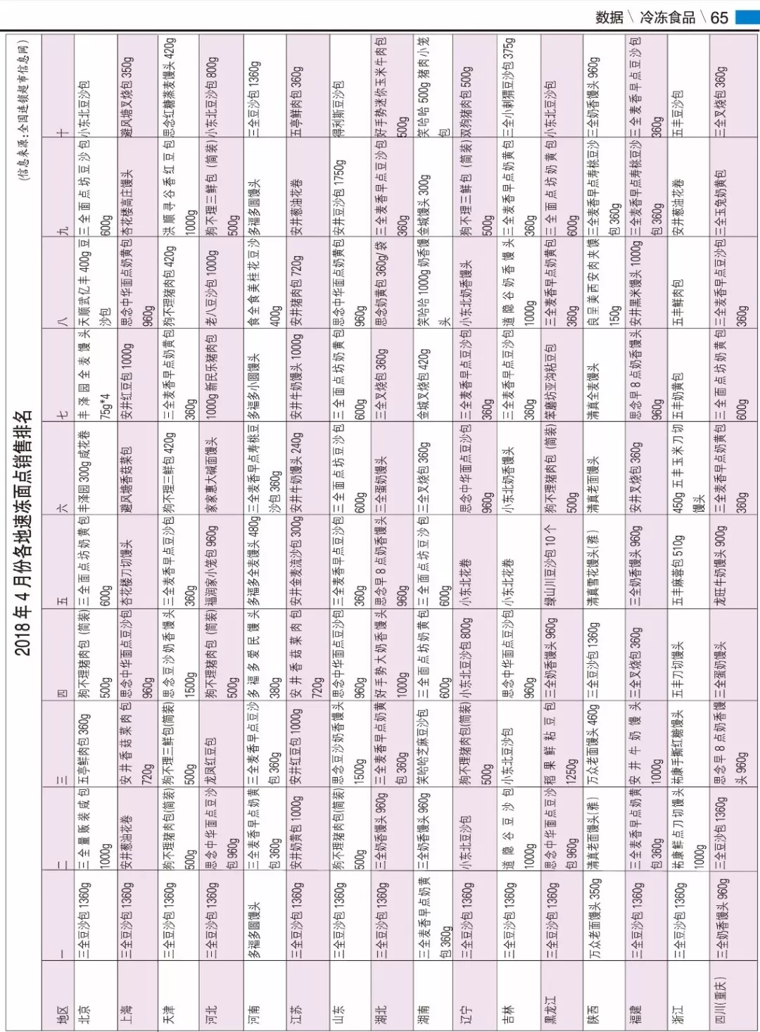 數(shù)據(jù)丨2018年4月份各地速凍面點銷售排名