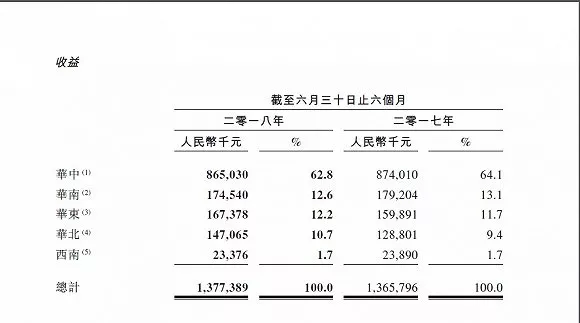 而截止2018年6月30日止6個(gè)月,華北地區(qū)取得顯著增長,其收益貢獻(xiàn)較2017年同期增加在14%左右。