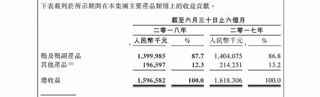 從收入構(gòu)成上來看,2018年上半年,周黑鴨旗下鴨及鴨副產(chǎn)品、其他產(chǎn)品,分別實(shí)現(xiàn)收益約為14億和1.97億元,占比各為87.7%和12.3%,同比都在下滑之中。