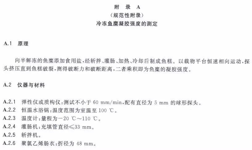 第四,規(guī)范性附錄中有關(guān)冷凍魚糜凝膠強度的測定,唯一值得商榷的是“斬拌機”。實踐中,魚糜實驗用“斬拌機”的類型不同,對魚糜凝膠性數(shù)據(jù)影響較大。使用不同類型的“斬拌機”做實驗,很容易引起供銷雙方對質(zhì)量數(shù)據(jù)的質(zhì)疑。