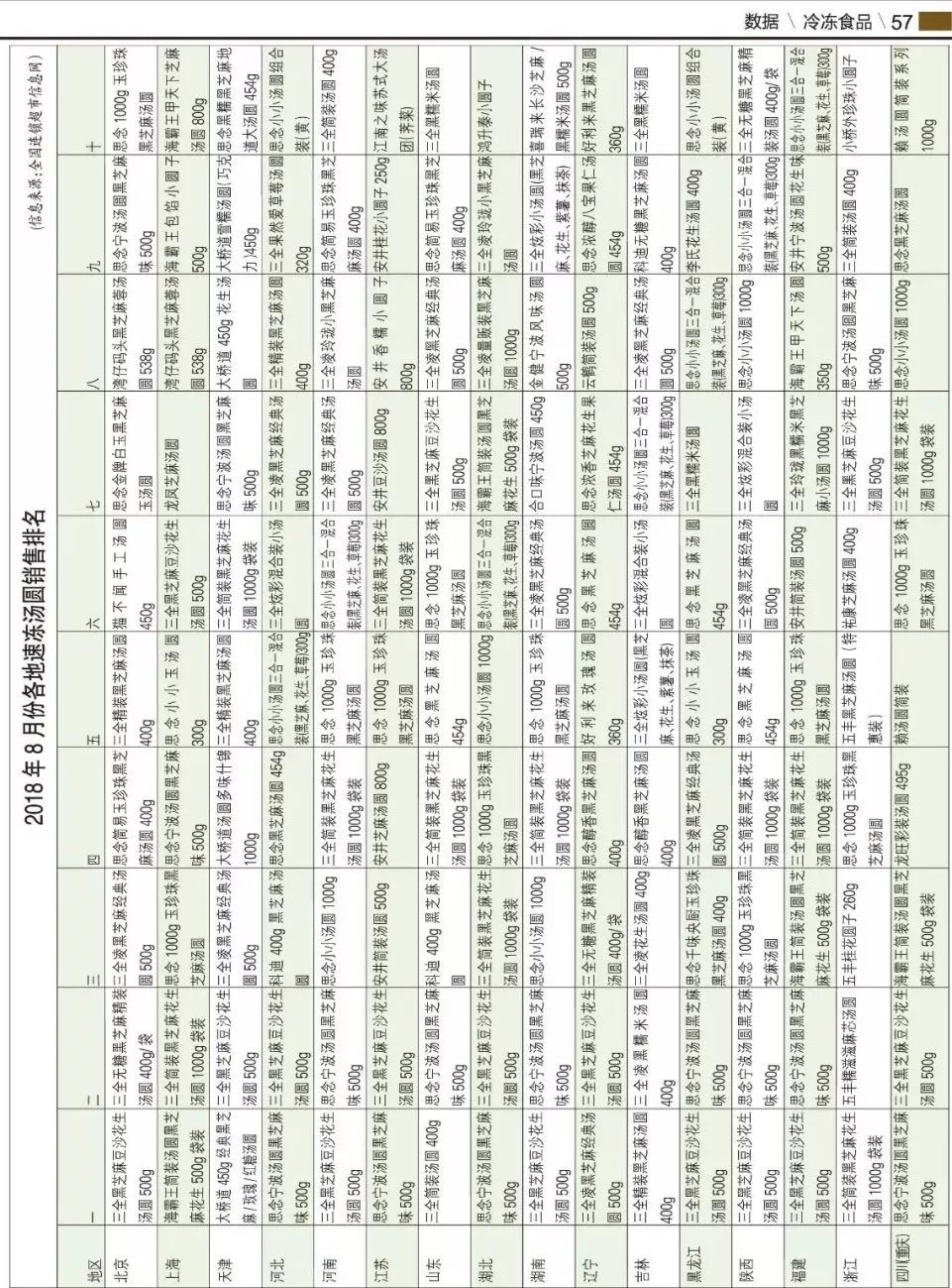 來源: 冷凍食品網(wǎng) 發(fā)布者:編輯▼2018年8月份各地速凍湯圓銷售排名
