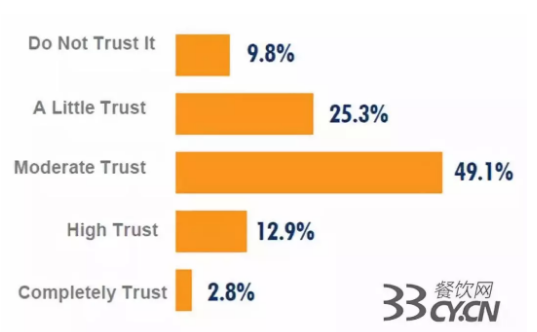 根據(jù)TrendSource近期基于美國便利店內(nèi)鮮食(炸雞、熱狗、Nachos)的調(diào)查,近一半(49.1%)的消費者認(rèn)為對于店內(nèi)鮮食的安全性、食物質(zhì)量適度信任,僅有2.8%的消費者完全信任其質(zhì)量,另外合計約35%的消費者完全或基本不信任其質(zhì)量。