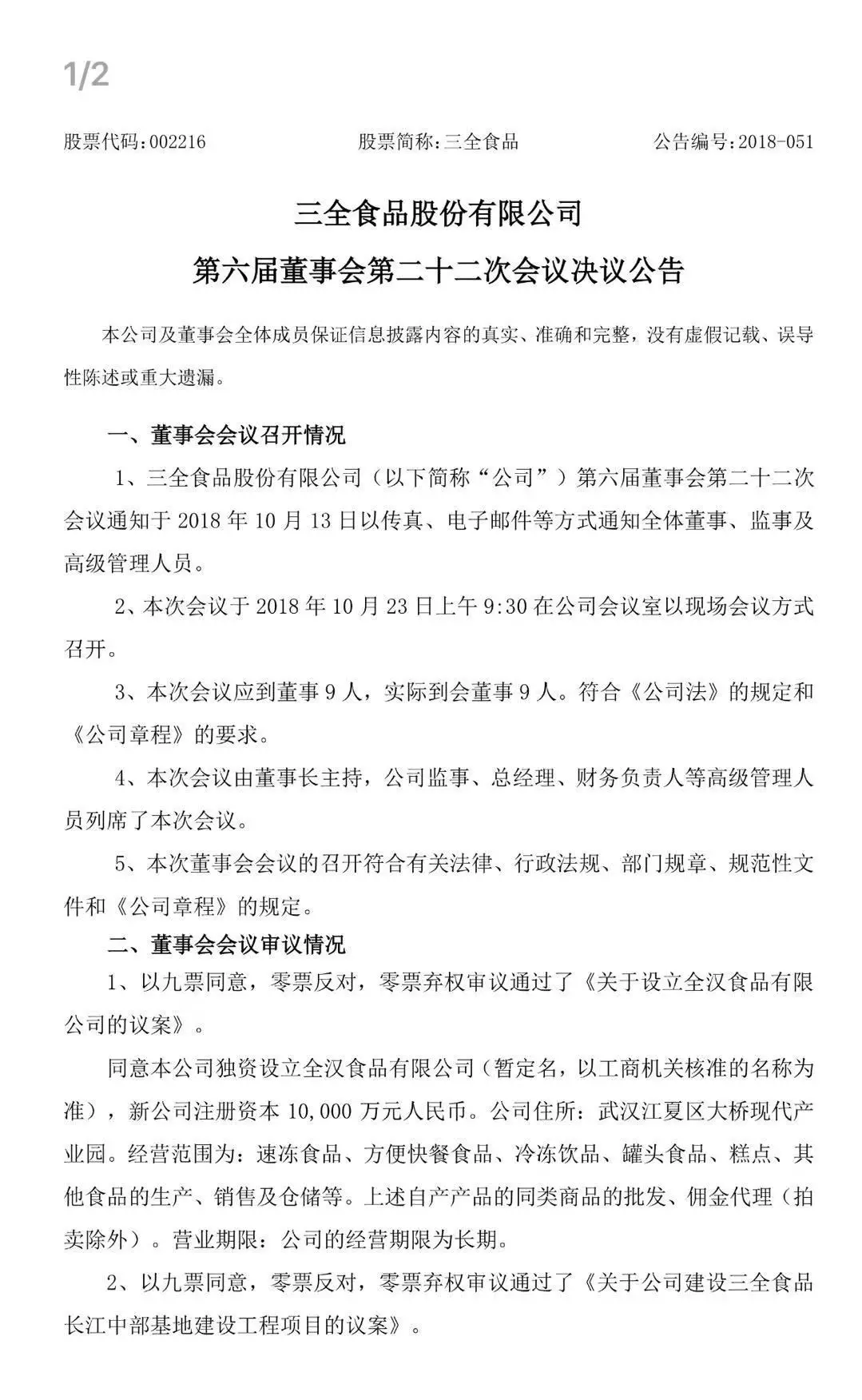 10月17日,安井食品與湯陰縣人民政府簽約,擬投資3億元建華北生產(chǎn)基地。今天,三全食品又發(fā)公告稱(chēng),擬投資8億元在武漢建設(shè)長(zhǎng)江中部基地。
