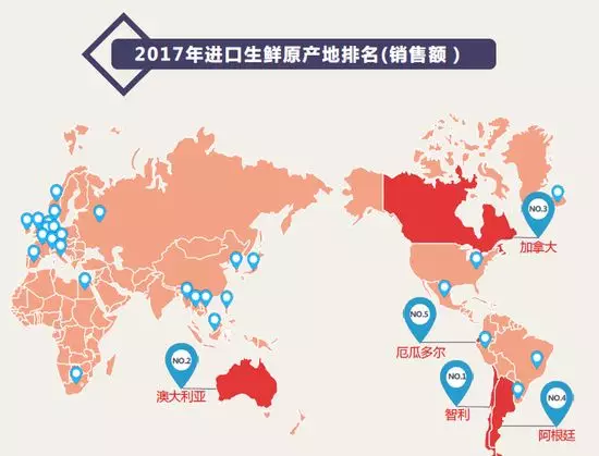 從生鮮產(chǎn)地來看,“尋鮮”走向國際,生鮮消費更加具有國際范兒。隨著人民生活水平提高,對于進(jìn)口生鮮的消費表現(xiàn)得更加明顯。