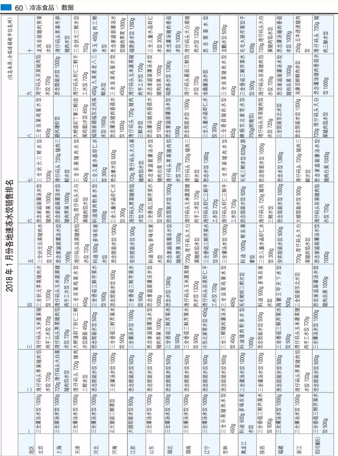 數(shù)據(jù)丨2018年1月份各地速凍水餃銷售排名