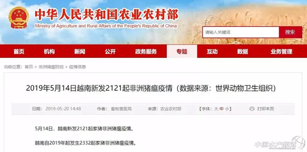 據世界動物衛(wèi)生組織消息,5月14日,越南新發(fā)2121起家豬非洲豬瘟疫情。越南自2019年起發(fā)生2332起家豬非洲豬瘟疫情。