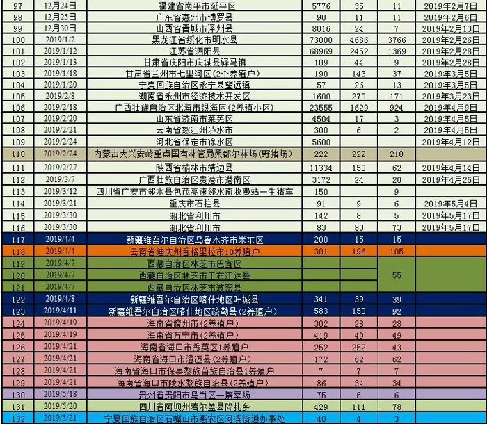 這是我國發(fā)生的第132起疫情(129起家豬疫情,3起野豬疫情),寧夏回族自治區(qū)自1月20日發(fā)生非洲豬瘟疫情后,再次發(fā)生疫情。