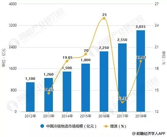 2012-2018年中國冷鏈物流市場規(guī)模統(tǒng)計及增長情況預(yù)測