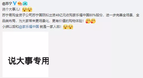 今年4月10日,家樂福中國還曾宣布與蘇寧的競爭對手國美達成戰(zhàn)略合作,其全國200余家門店中的電器區(qū)域交由國美來運營,預計7月底前完成200余家門店的改造。此次蘇寧完成對家樂福的收購后,后者與國美的合作是否能夠繼續(xù)尚不清楚。