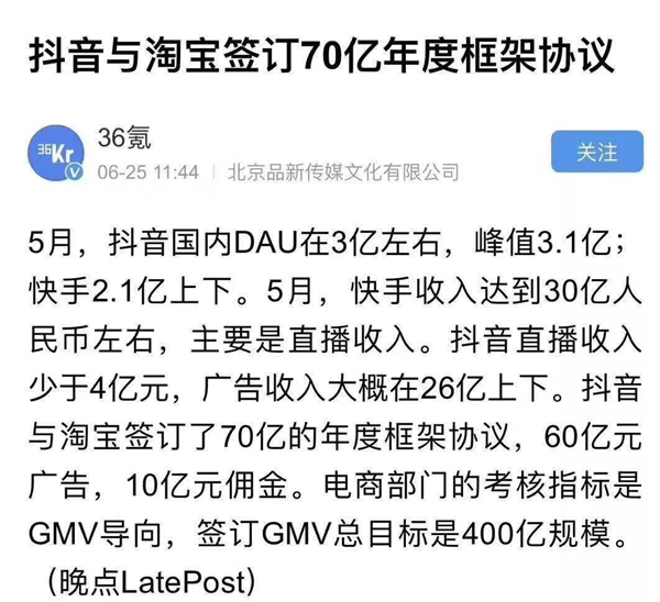 從2018年3月末開始,抖音和淘寶實(shí)現(xiàn)合作,抖音上已經(jīng)可以淘寶帶貨近期道,抖音與淘寶又簽訂了年度框架協(xié)議。