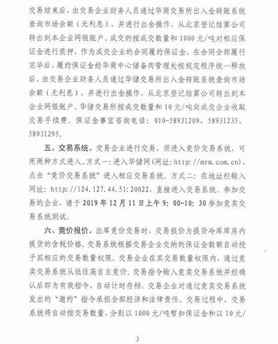 值得注意的是,《通知》提到,在12月12日競價成交后,成交企業(yè)不得借機囤積,必須交易成交后一個月內(nèi)將儲備肉賣給終端用戶。