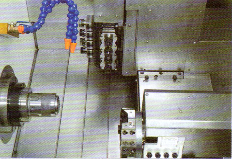 ◆Y軸式動力:當需要較多的動力頭,同時為了避免干涉時,可以采用Y軸式動力頭;通常軸向。徑向各三個動力頭,由Y軸升降來轉(zhuǎn)換;與液壓刀塔配合使用,可完成較復(fù)雜的復(fù)合工作。