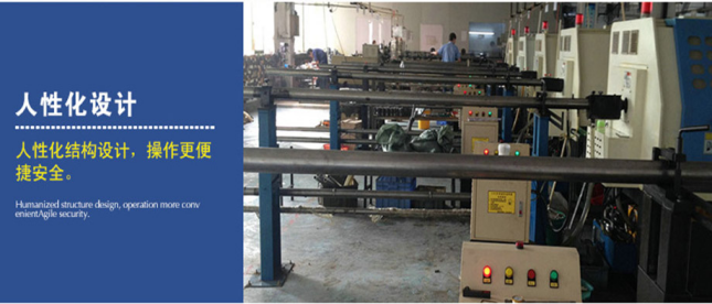 特點(diǎn):自動(dòng)化生產(chǎn)線,一次性可裝30支料左右,自動(dòng)加料、自動(dòng)卸料尾,不用人加料,省人工,一人可看30臺(tái)機(jī)、安全操作。