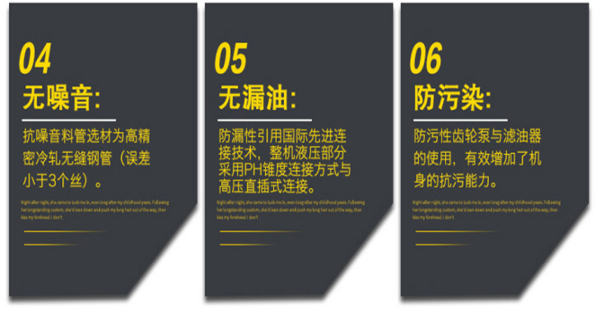 齒輪泵與濾油器的運(yùn)用,有用增加了機(jī)身的抗污才能,大大提高機(jī)身壽數(shù)與液壓油的運(yùn)用壽數(shù),處理原資料不潔凈而導(dǎo)致的疑問(wèn)