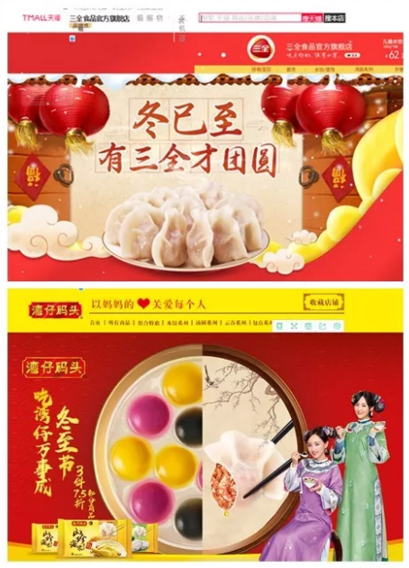 冬至比拼的戰(zhàn)火還蔓延到了線上,三全和灣仔碼頭的天貓官方旗艦店都已經(jīng)啟動(dòng)冬至促銷,思念則參與了京東生鮮的“餃子節(jié)”,線上線下齊發(fā)力。而據(jù)灣仔碼頭官方微信顯示,在冬至當(dāng)晚,灣仔碼頭的形象代言人SNH48還會(huì)進(jìn)行直播。