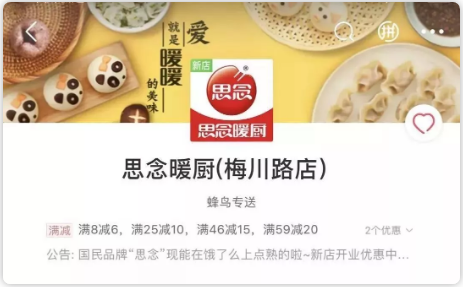 8月8日,思念食品通過(guò)官方微信宣布,攜手餓了么推出外賣餐飲店“思念暖廚”,與此相似的是,“灣仔碼頭”的水餃外賣店也同時(shí)出現(xiàn)。此外,冷凍燜面、煎餃類產(chǎn)品也被用作外賣點(diǎn)心。