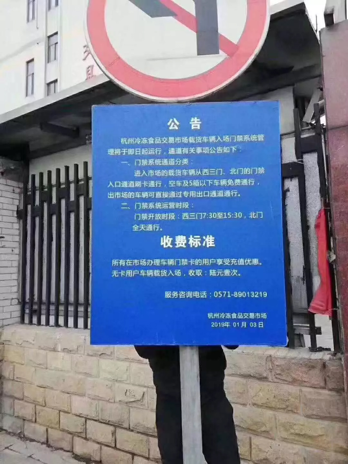 1月3日,杭州冷凍食品交易市場再發(fā)公告,稱載貨車輛入場門禁系統(tǒng)管理于即日起試運行,公布了門禁系統(tǒng)的通道分類、運營時段和收費標準等內容。